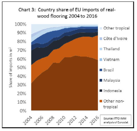 EU28 imports of real wood flooring from the tropics