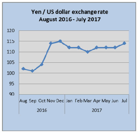 monetary easing. In mid-July the yen was at its lowest