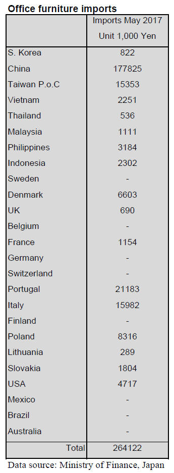Year on year May imports of wooden office furniture were