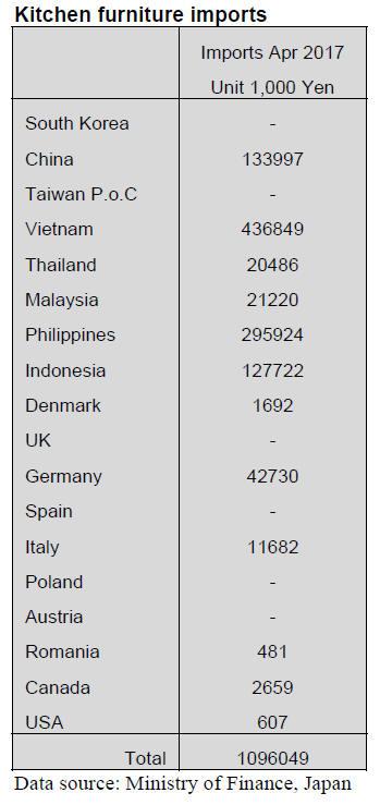 The top three shippers of kitchen furniture to Japan,