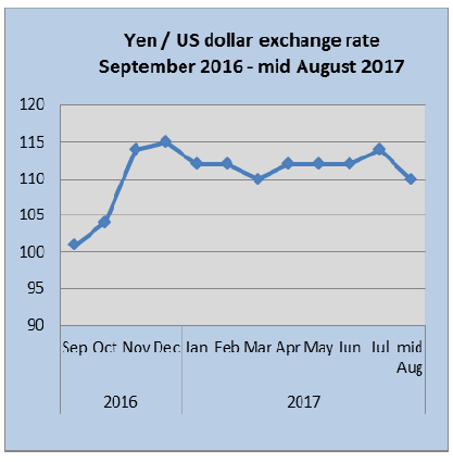 Yen¡¯s exchange rate has been weak to the dollar, which