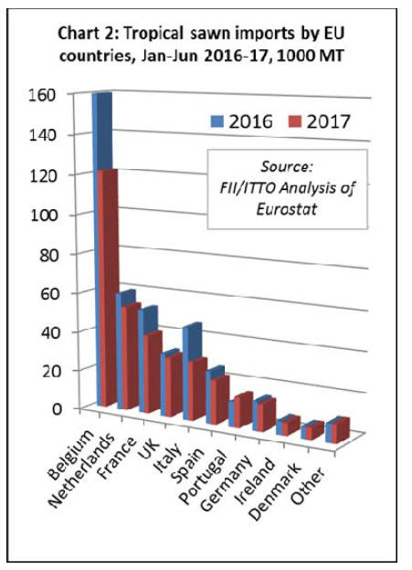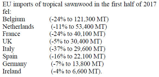 decline in EU imports of tropical sawn wood in some parts