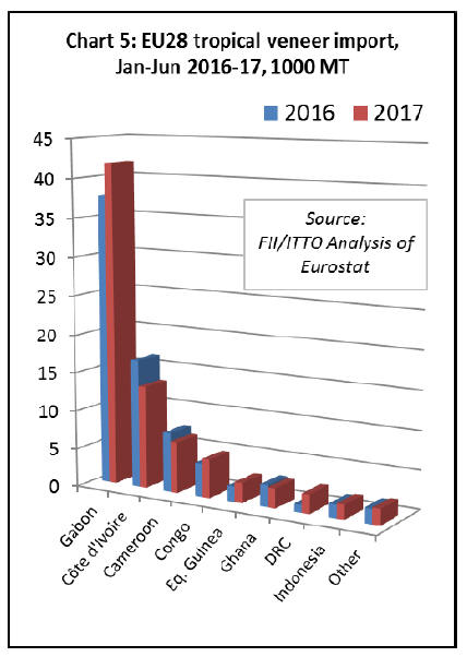 Imports of tropical veneer declined into the two largest EU