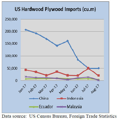 increased hardwood plywood exports to the US in August.