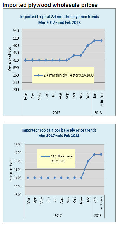 Japan¡¯s plywood imports in 2017 at almost 250,000 cu.m