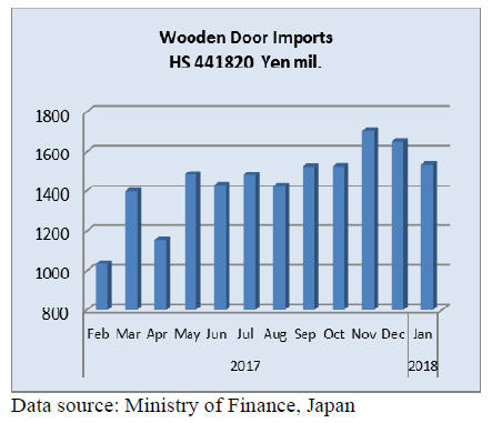 January imports of wooden doors (HS441820) were up