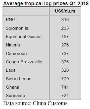 tropical logs for China. Data from China¡¯s Customs shows