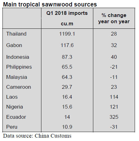 just over 90% of China¡¯s ¡®tropical¡¯ sawnwood