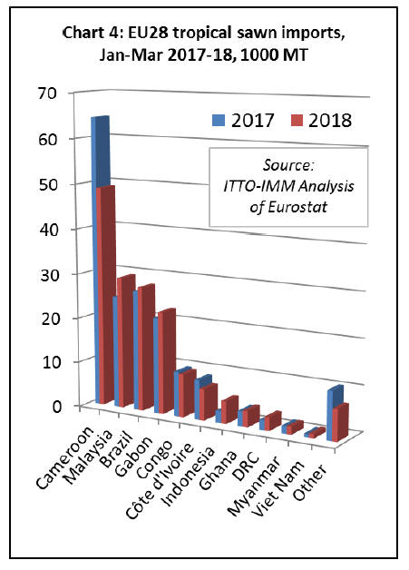in EU imports of tropical sawn to 166,000 MT, a 28%