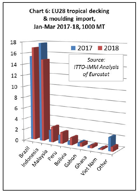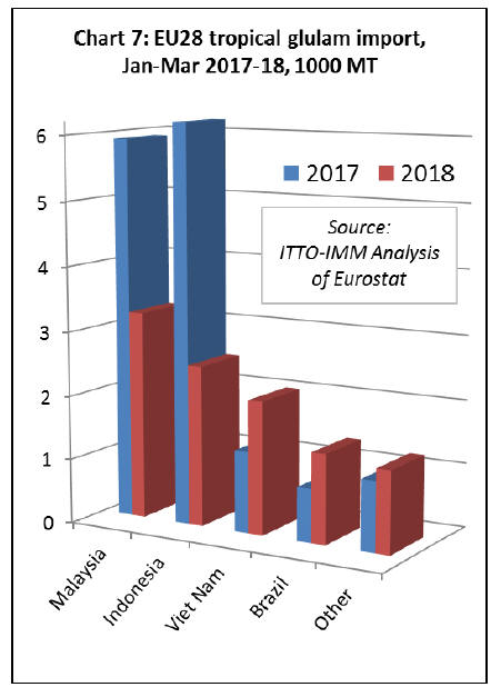 In the first quarter of 2018 EU imports of tropical glulam
