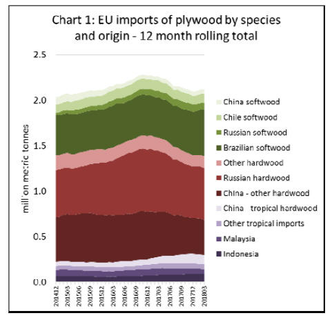 EU tropical plywood imports were 23% lower by value at