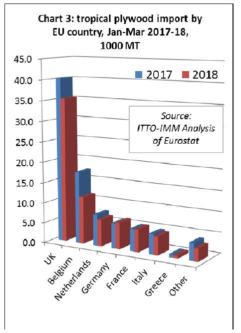 imports of tropical plywood declined in the UK by 12% to