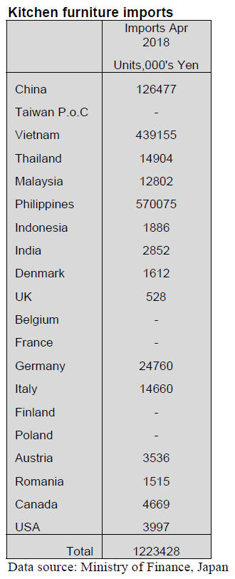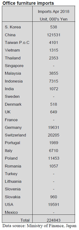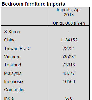 furniture to Japan, accounting for 47% of April 2018