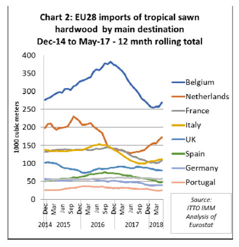 The improvement in EU tropical sawn hardwood imports