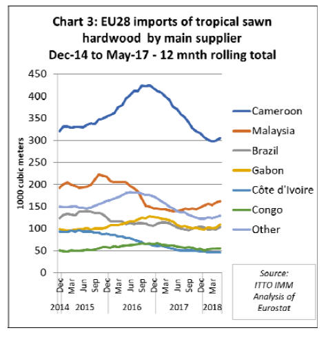 tropical suppliers. EU imports of sawn hardwood from