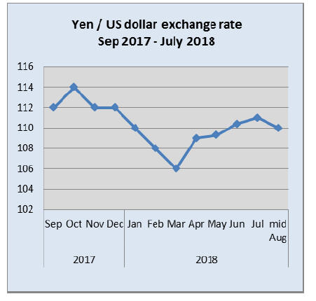 policy the yen fell against the US dollar. There was