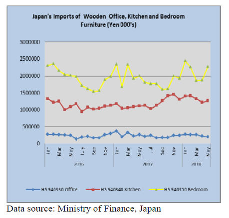 The month by month trends in imports of bedroom and
