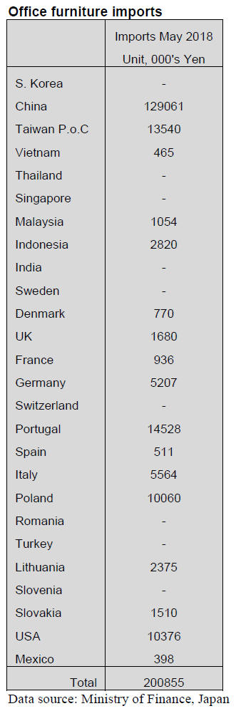 The top three shippers of wooden office furniture to Japan