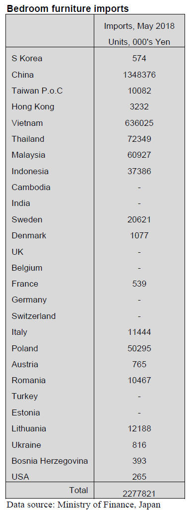bedroom furniture imports were significantly higher than a