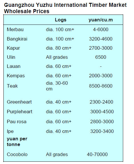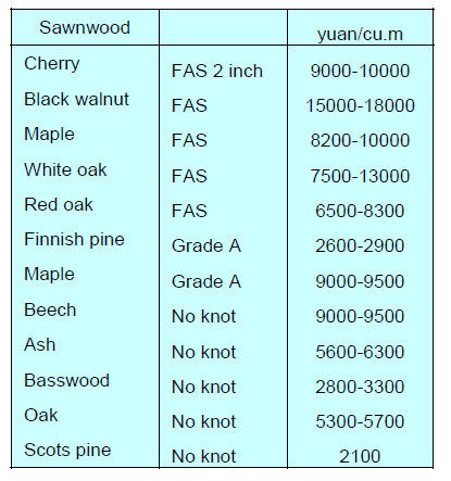 sawnwood from Japan fell 5% to US$247 per cubic metre.