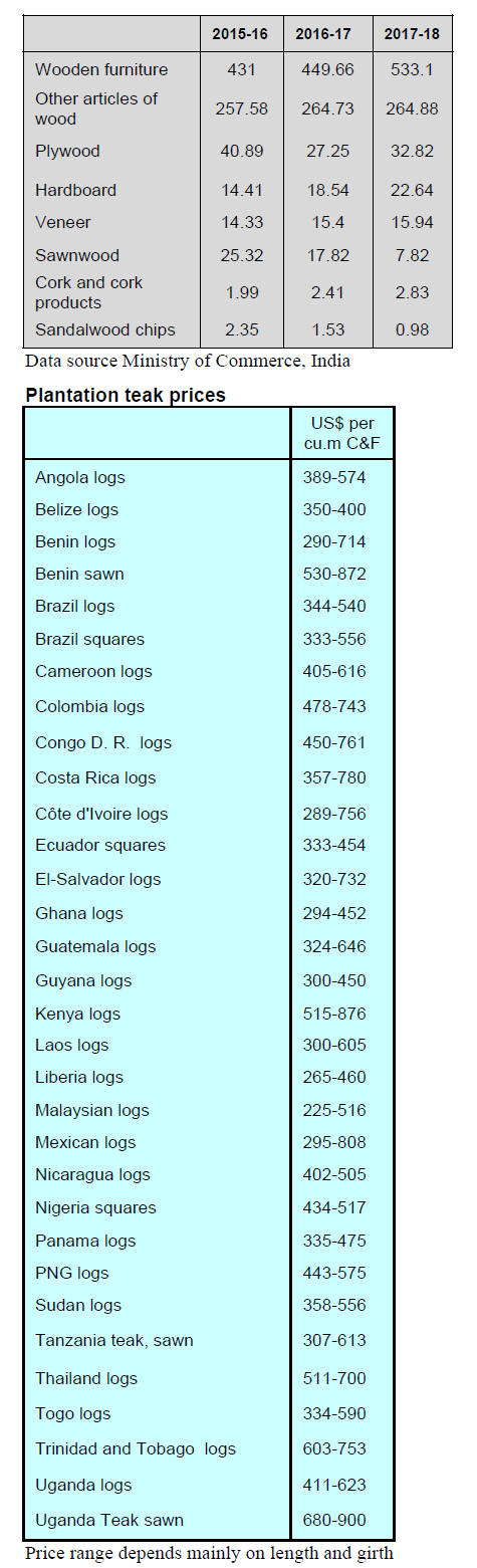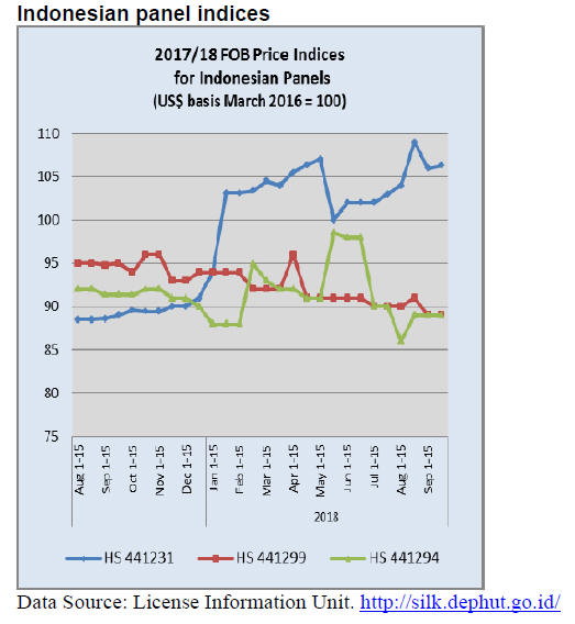 As for tropical plywood, exports declined 23% in volume,