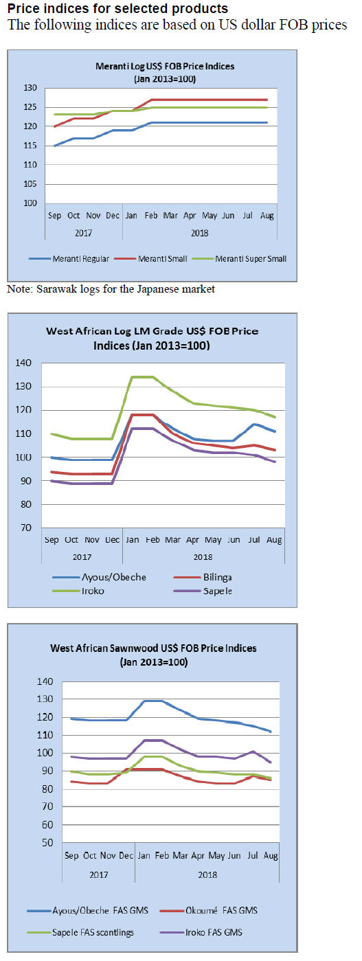 In August tropical sawnwood exports increased 30% in