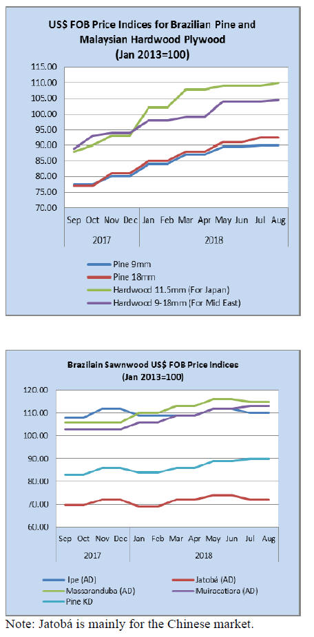 In August 2018, Brazilian exports of wood-based products