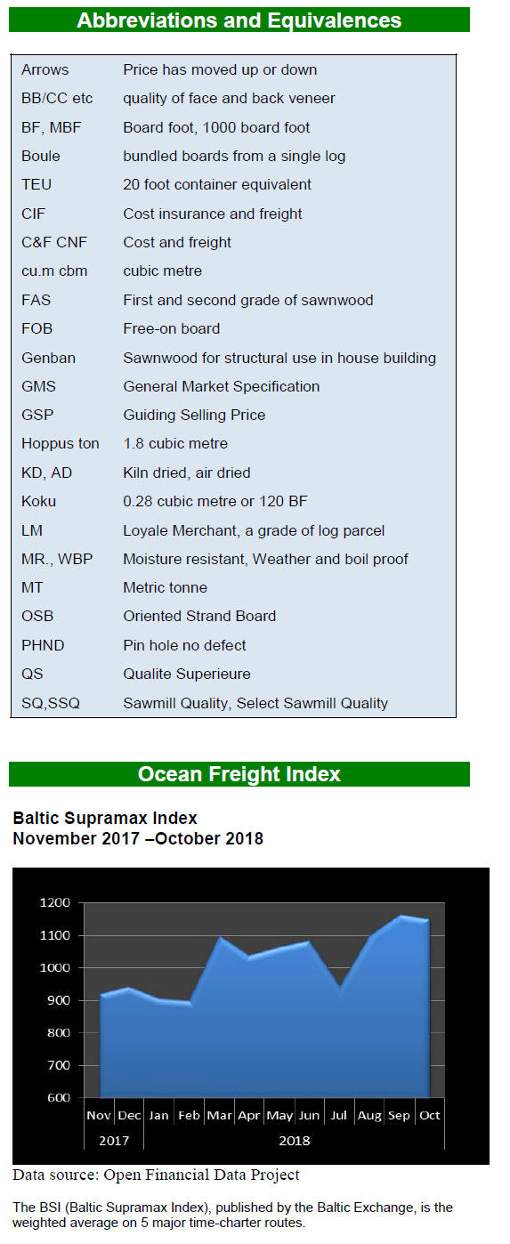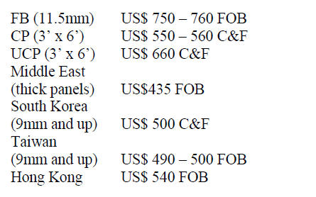 Traders based in Sarawak reported the following plywood