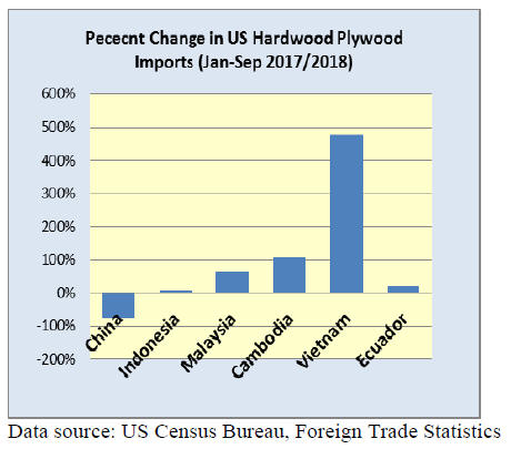 of hardwood veneer for the US. Despite the monthly drop,