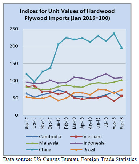 US imports of hardwood plywood fell by 9% in September