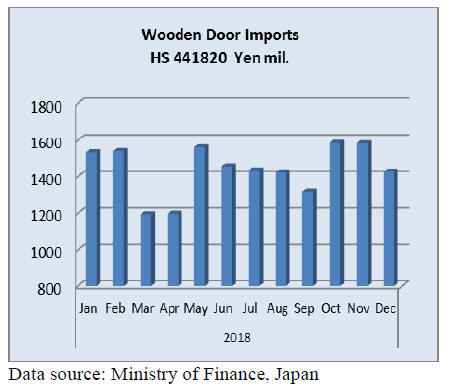 Japan¡¯s 2018 imports of wooden doors (HS 441820) are