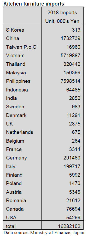 The value of Japan¡¯s imports of wooden kitchen furniture