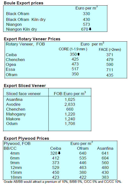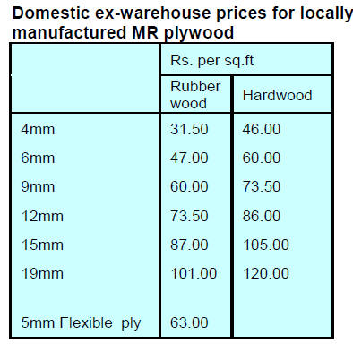 Ex-warehouse prices for domestically made plywood are