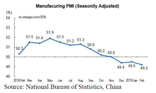 In February 2019 China's manufacturing purchasing