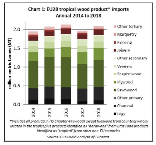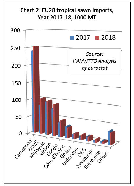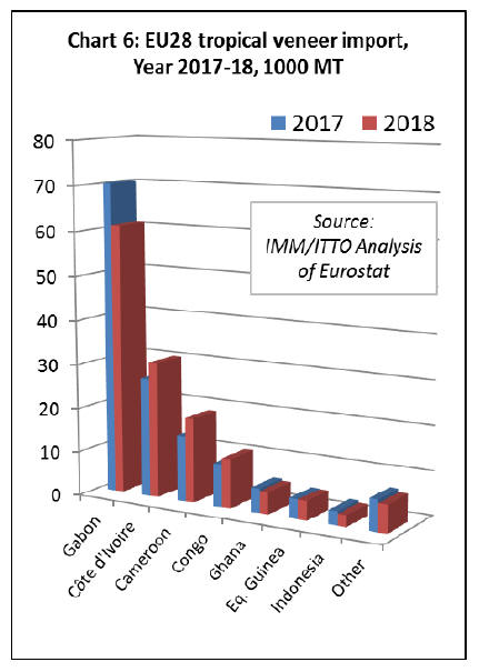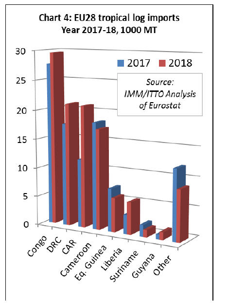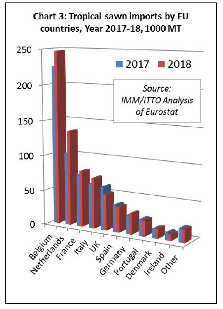 Belgium (+40% to 30,100 MT). Imports of tropical logs