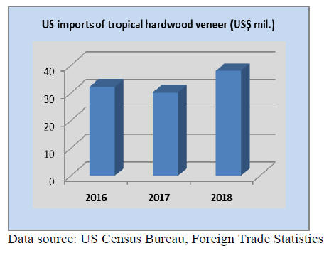 US imports of tropical hardwood veneer grew by 39% in