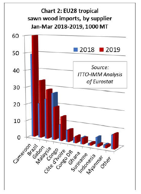 EU imports of tropical sawn wood increased 15% to
