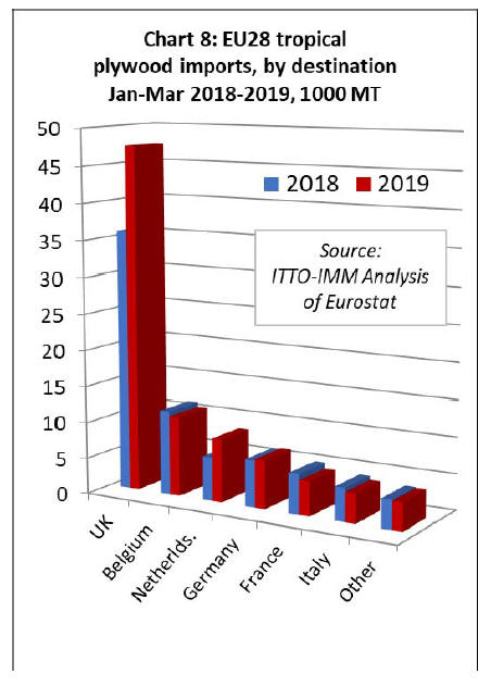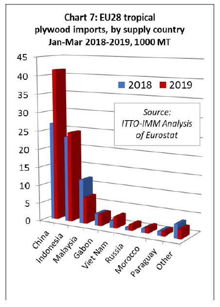 In the first quarter of 2019, tropical veneer imports