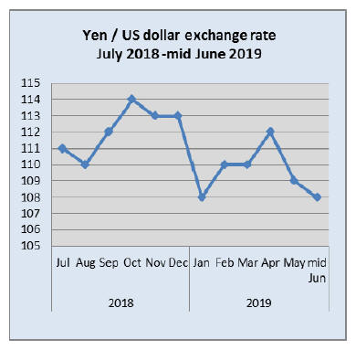 In June the yen fell to a low of 107 against the US dollar