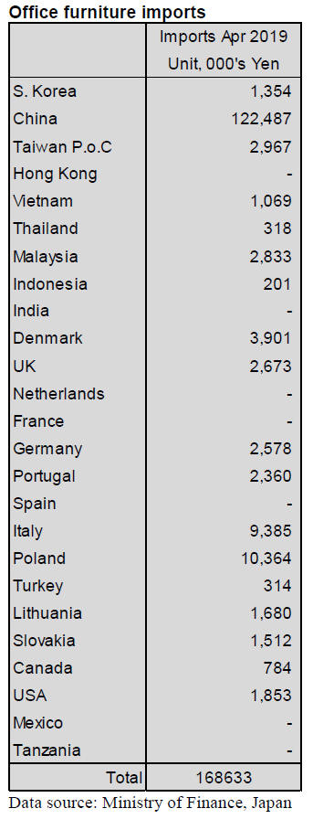 Year on year, the value of April imports of wooden office
