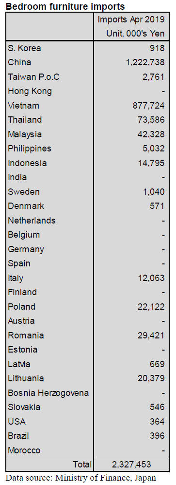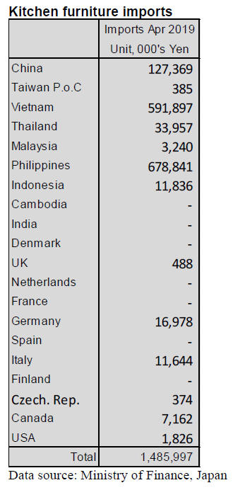shippers of wooden kitchen furniture to Japan in April
