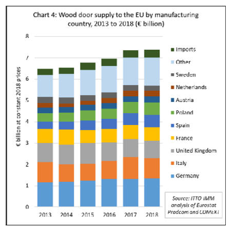 Overall the share of wood in the total value of EU door