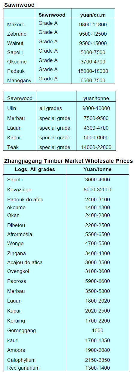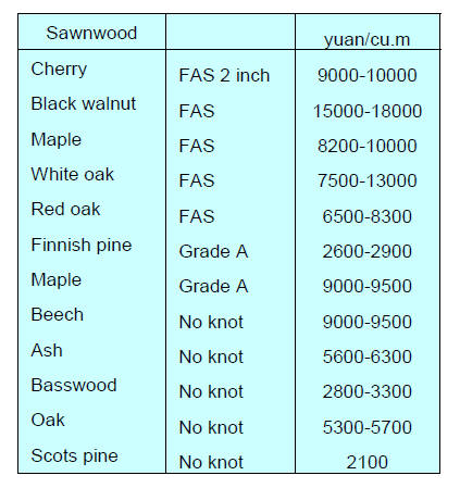 hand imports of sawnwood increased slightly.