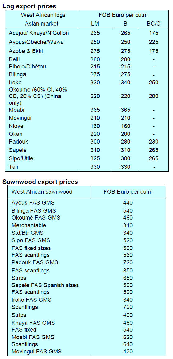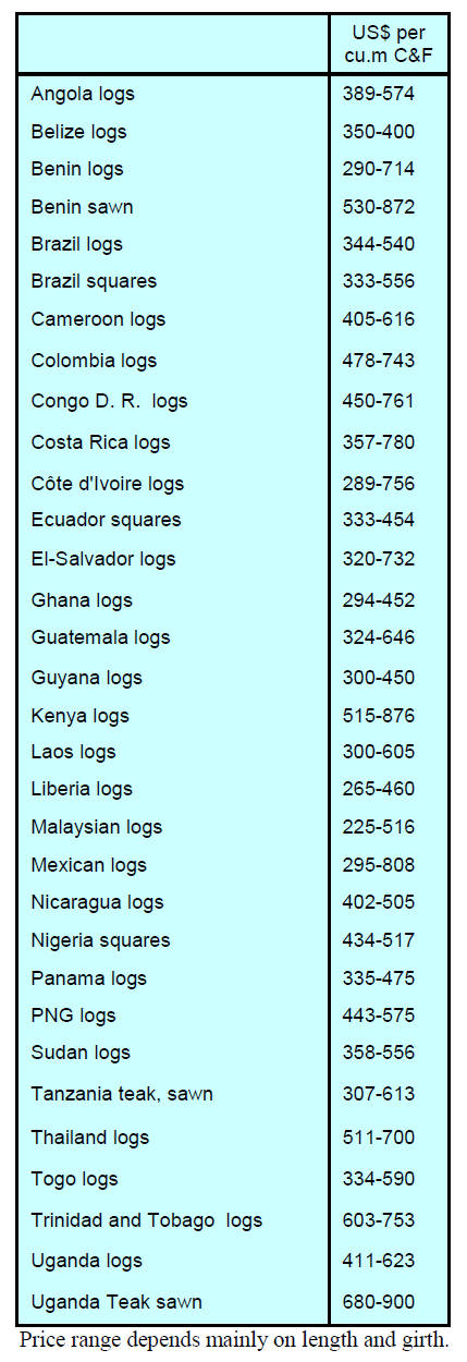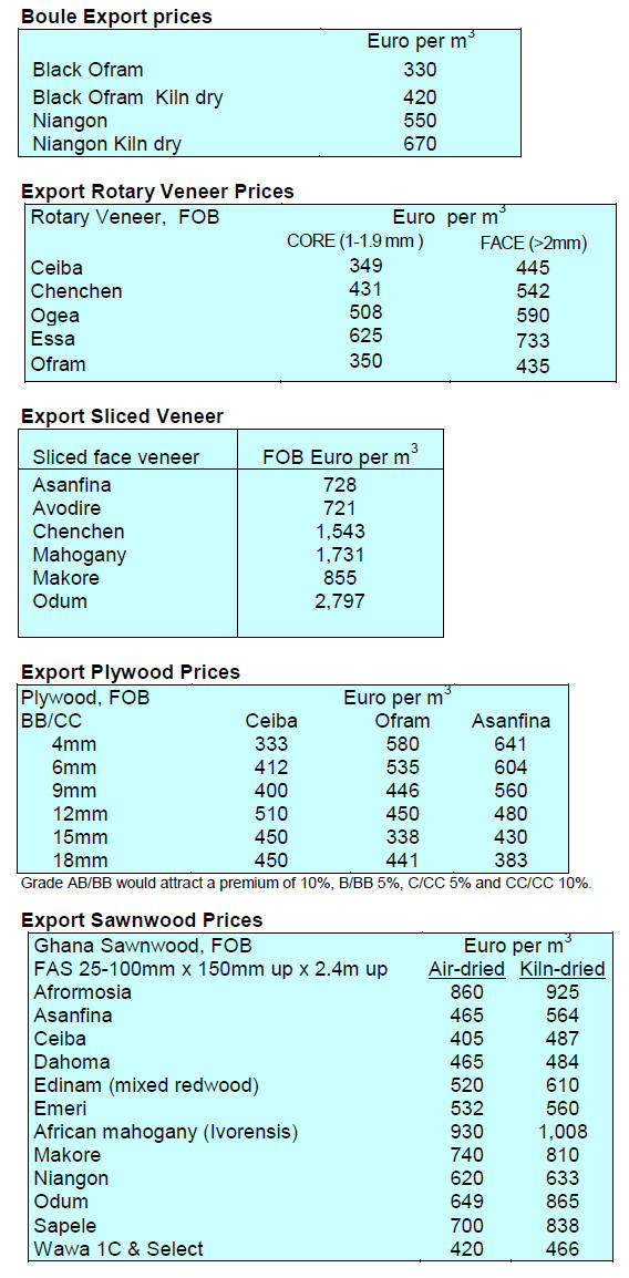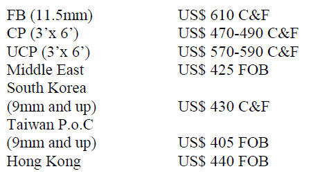 Plywood traders based in Sarawak reported the following July export prices.