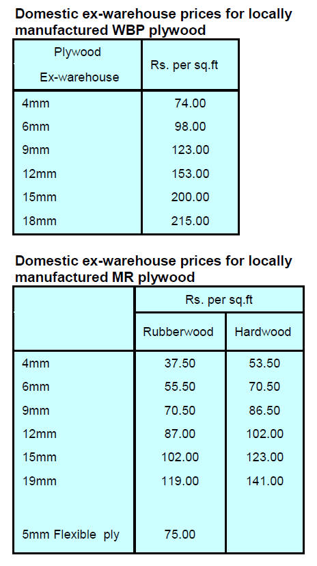 from Malaysian made plywood for the domestic market has been completed and