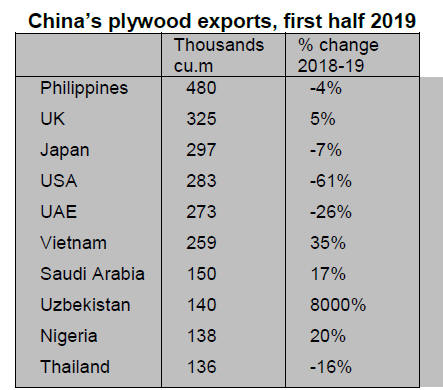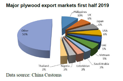 In the first half of 2019 the volume of China¡¯s plywood exports