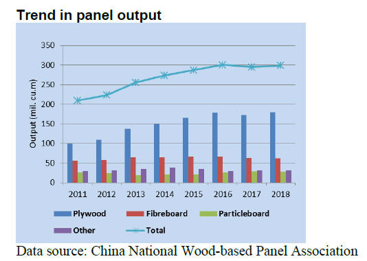 It has been reported that the output of wood-based panel products in