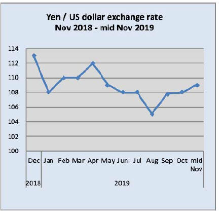 from 130 yen plus in 2017 and 2018 to 118-119 yen per
