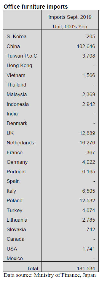 Japan¡¯s September imports of wooden office furniture (HS