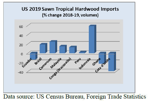 US imports of sawn tropical hardwood grew by 12% in 2019 to a total of